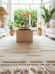 ✨ Élégance architecturale et douceur absolueCe tapis berbère écru, orné d’un motif en relief géométrique inspiré des carreaux traditionnels marocains, est une véritable pièce d’exception.Tissé à la main dans les...