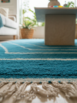 Ce tapis berbère bleu intense, orné de lignes géométriques écrues en forme de chevrons, incarne la rencontre parfaite entre art traditionnel et design contemporain.