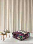 ✨ Osez les contrastes et la créativité avec ce pouf berbère éclatant, entièrement réalisé à la main à partir de tapis Boucherouite recyclés.